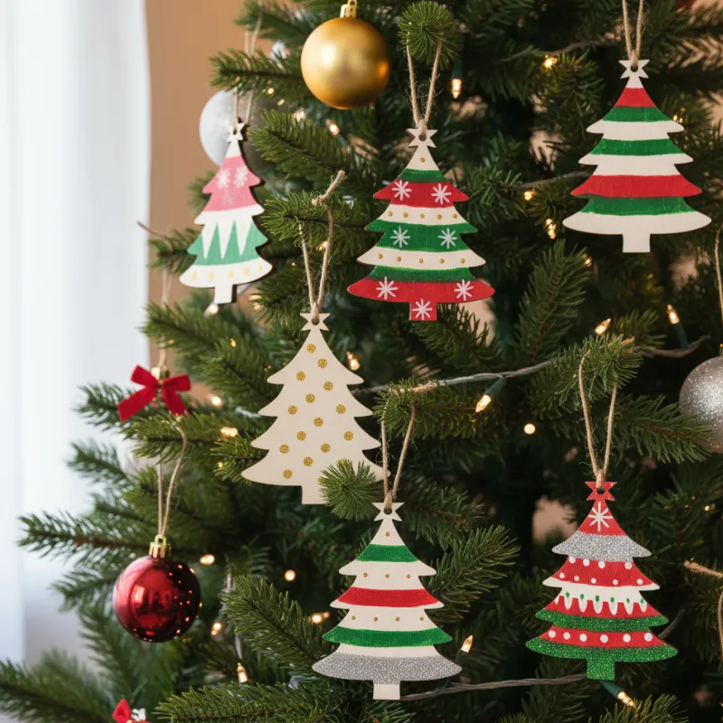 My kids love painting these wooden shapes every year. Watching them hang their artwork on the tree always brings big smiles to our faces.