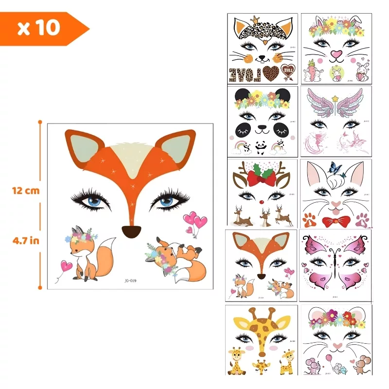 10pcs Kids Temporary Face Tattoo Sticker Set