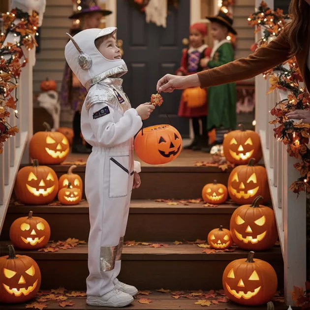 Our family picture looks awesome with my child dressed up as an astronaut! The glittery details made it super fun for Halloween.