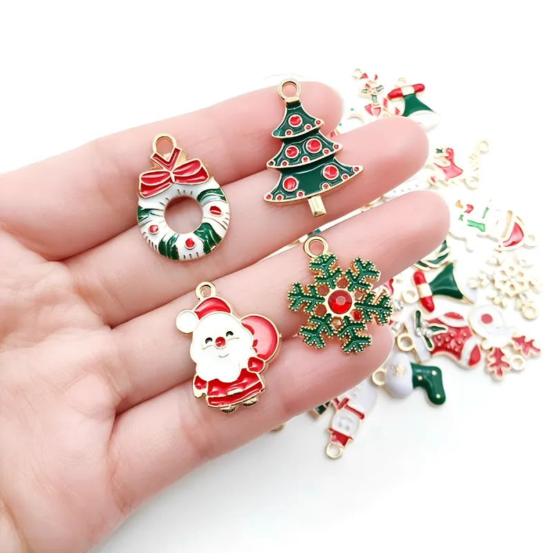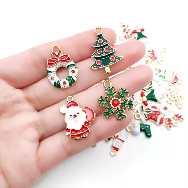 My holiday charm necklace looks so pretty! The pack had enough charms for everyone in my family to join in.