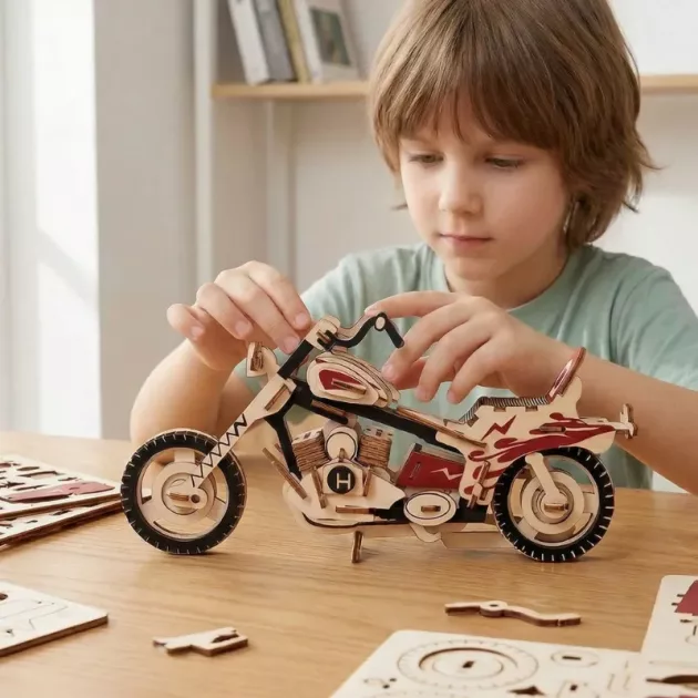Used the wooden motorcycle as a weekend project with my daughter. The clear steps made it simple to follow, and she learned to read diagrams without getting upset or giving up.
