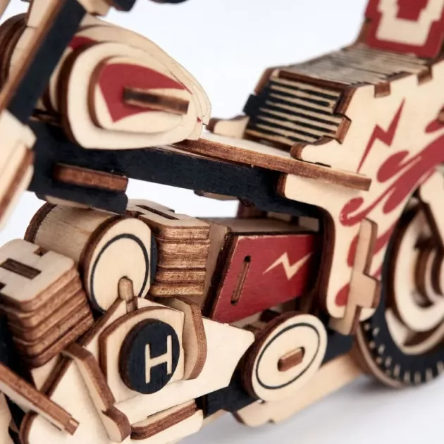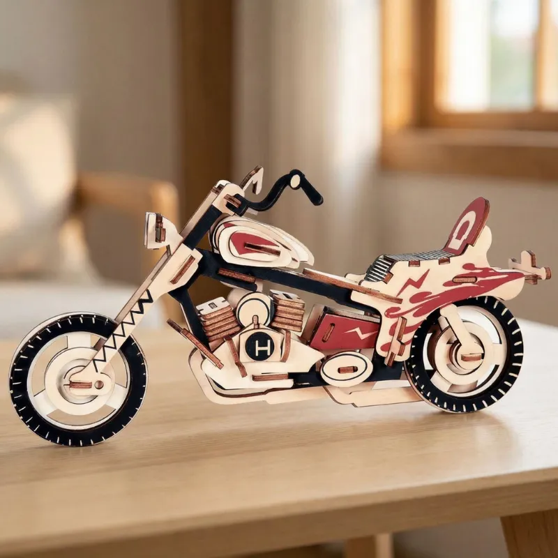 We used this motorcycle kit for a family game night. Each person handled different steps, and it was fun watching the shape slowly appear from a pile of wooden pieces.