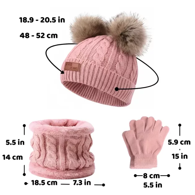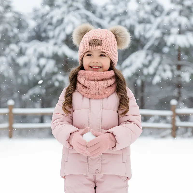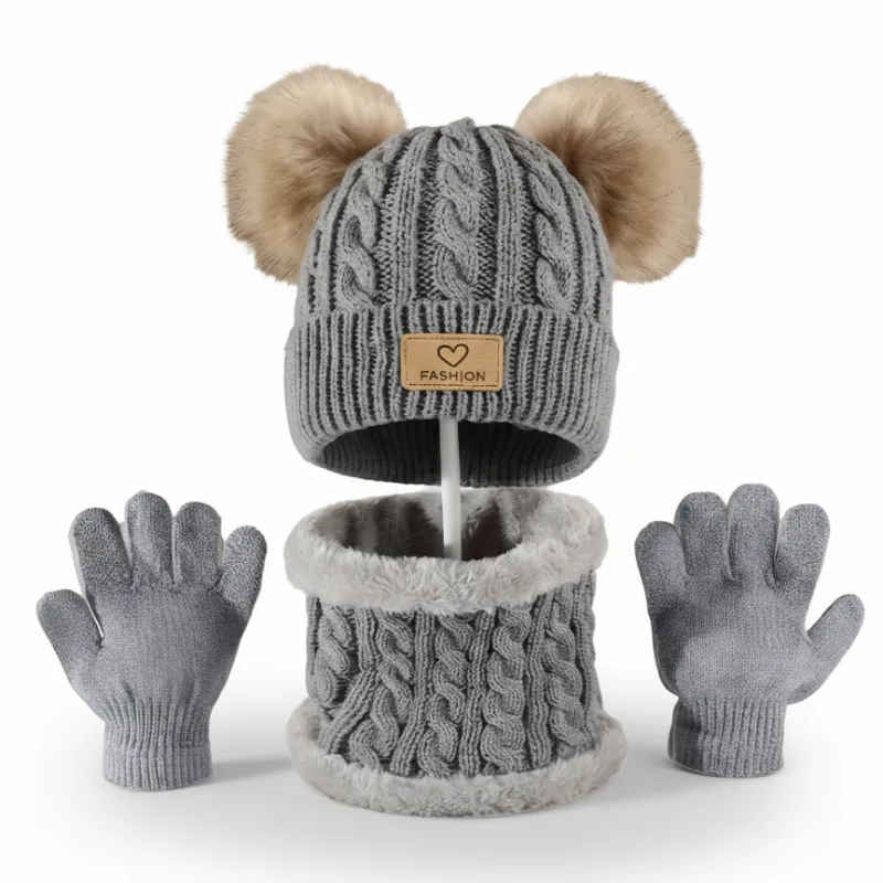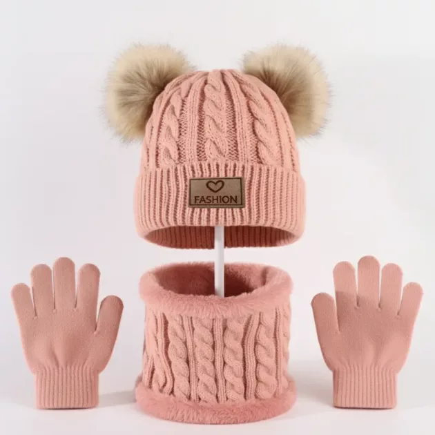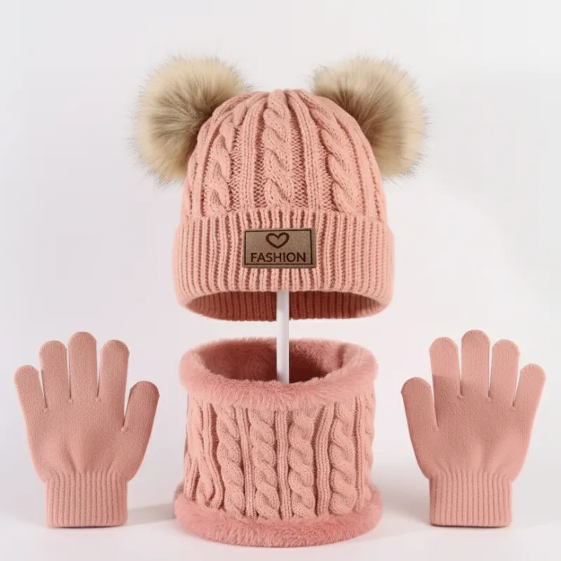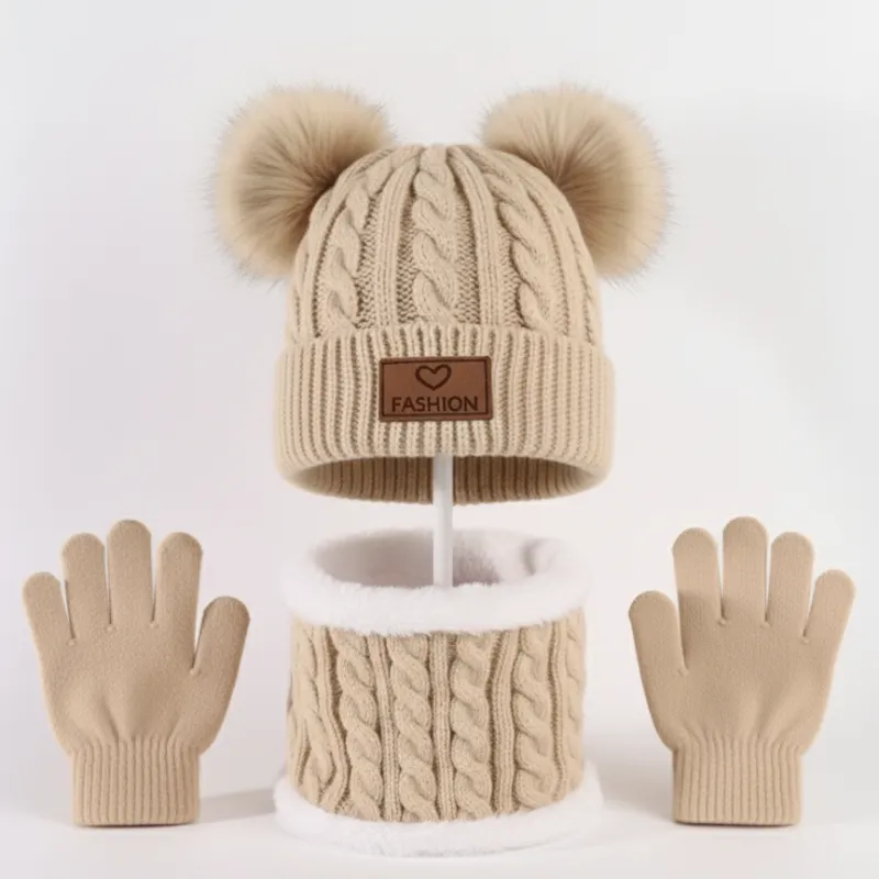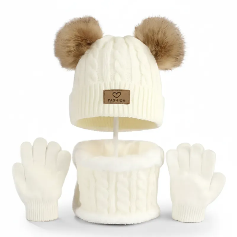 3pcs Cute Warm Cotton Hat Scarf and Gloves Set for Kids
