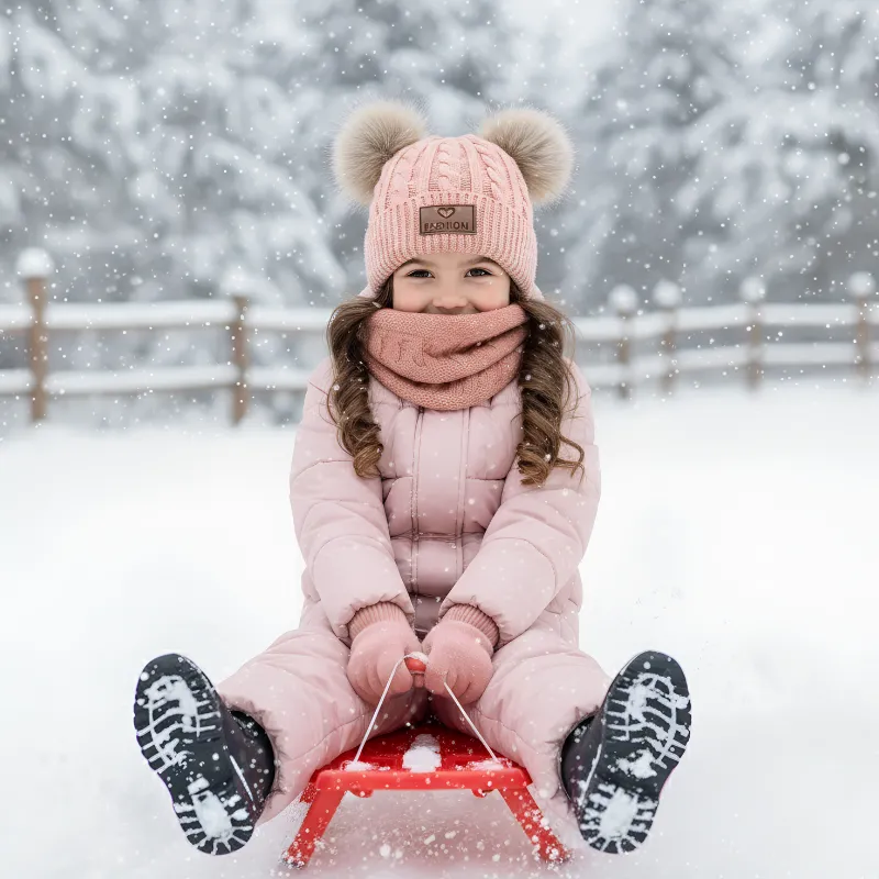 Perfect for snowy playground visits! The fabric keeps moisture away, and the scarf stays on even during wild play.