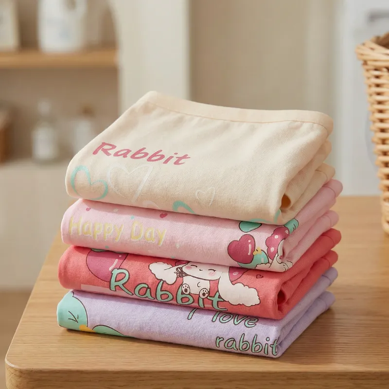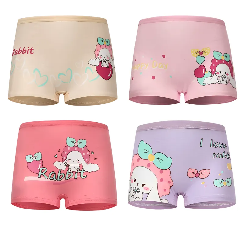 4pcs Cute Cotton Boxer Panties Breathable Underwear for Girls