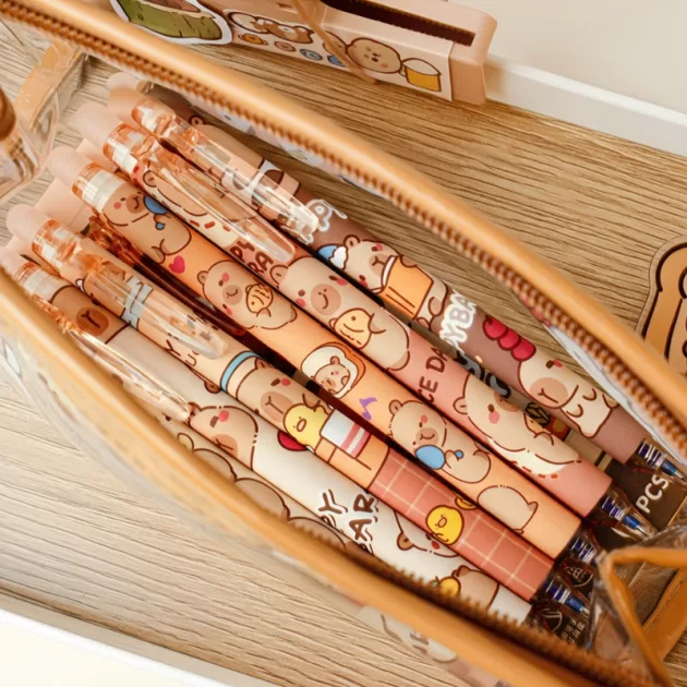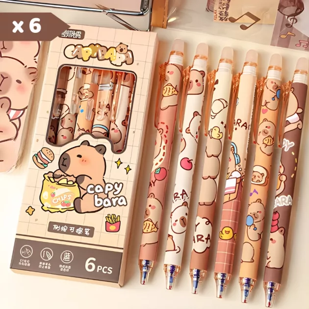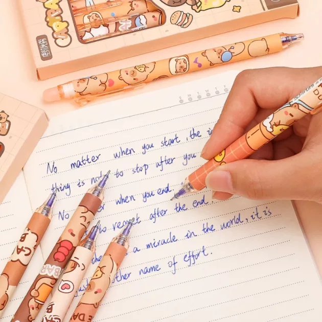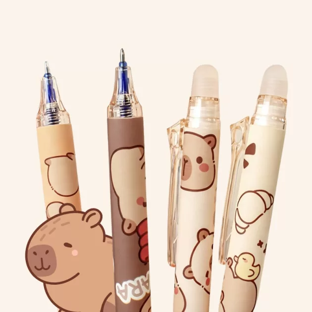 These capybara pens make my notes super cute! I love erasing little mistakes without any mess. My handwriting looks neat, and my friends always ask to borrow them.