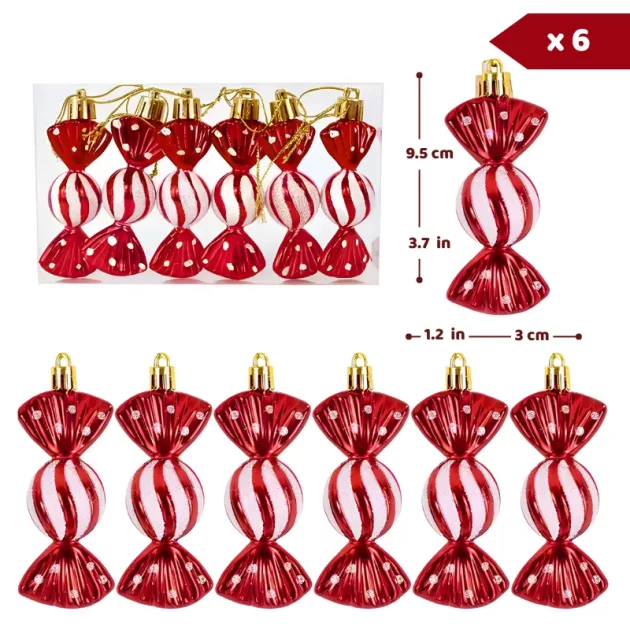 6pcs Red and White Christmas Tree Ornament Hanging Decoration