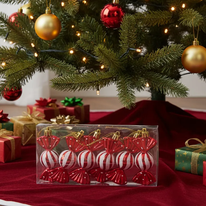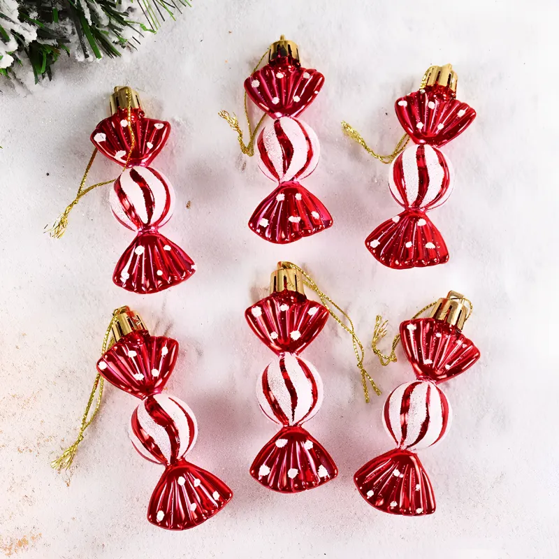 6pcs Red and White Christmas Tree Ornament Hanging Decoration