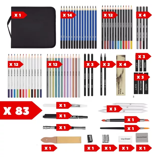 All-in-One Variety - Every essential is included for drawing, sketching and colouring practice. No need to search for extra supplies or worry about missing items.