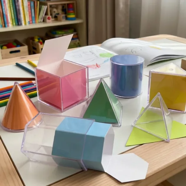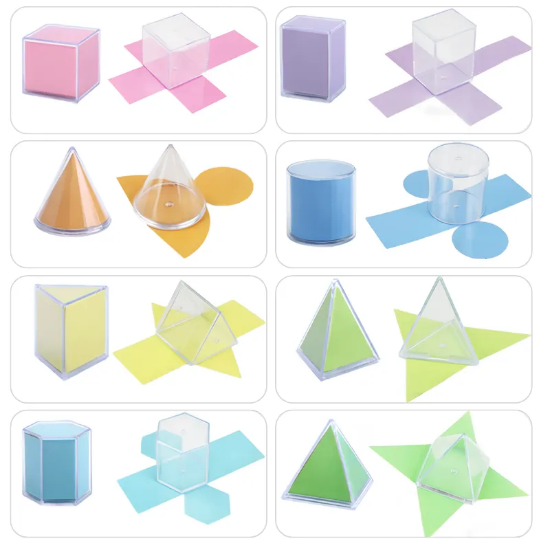 8pcs 3D Transparent Geometric Shapes Educational Maths Toy for Kids