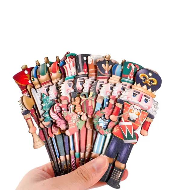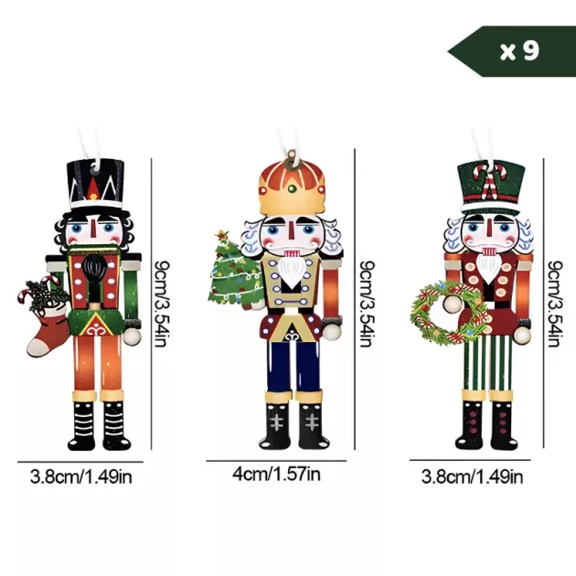 9pcs Wooden Christmas Tree Ornament Nutcracker Hanging Decoration