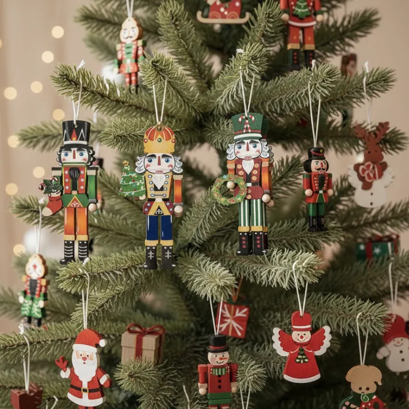 9pcs Wooden Christmas Tree Ornament Nutcracker Hanging Decoration