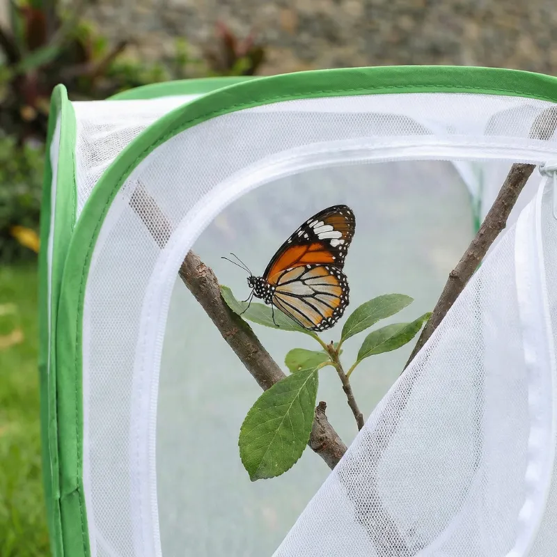 Bought the cage for my grandson’s birthday. He proudly shows everyone his “butterfly house,” and I like that I can keep an eye on everything through the sides.