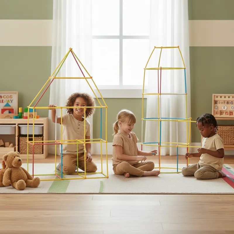 We use these pipes during playdates because everyone likes building together. The pieces don’t break, and the fun never gets boring.