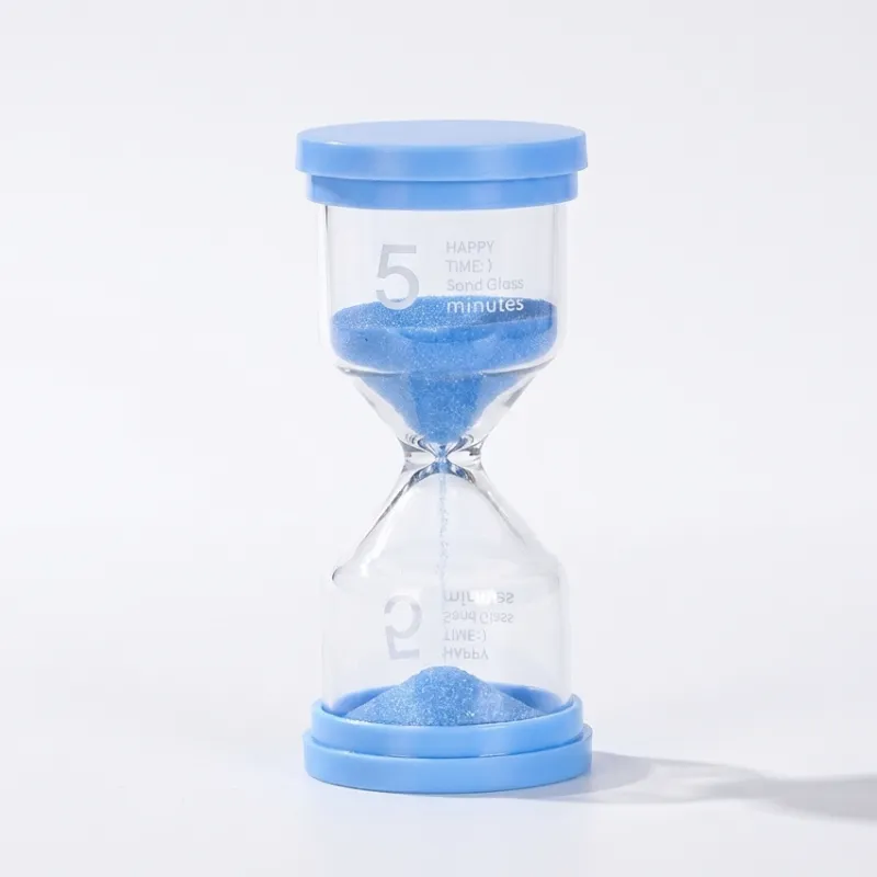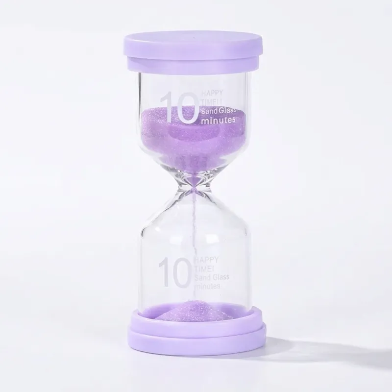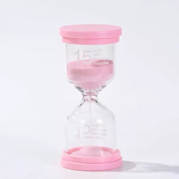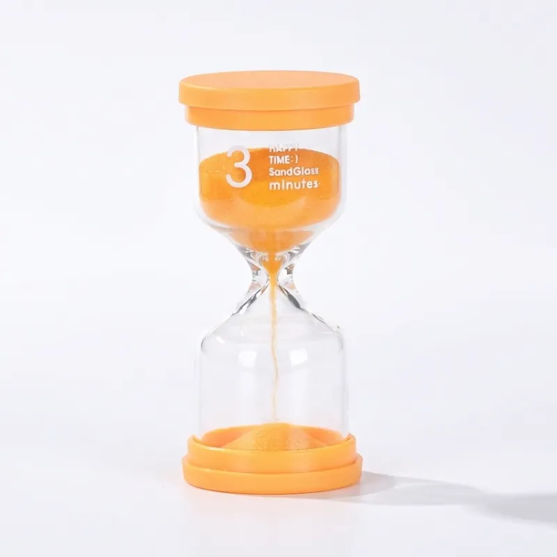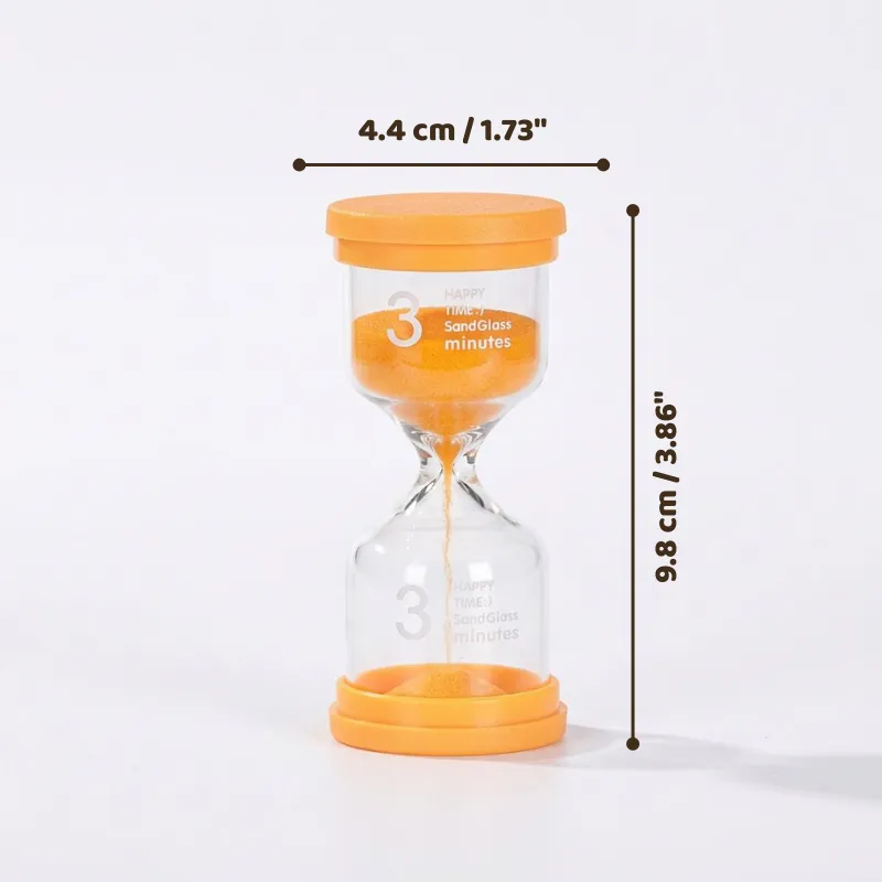 I use this hourglass during toothbrushing at night. The kids watch the sand instead of complaining, and they brush long enough without me counting.