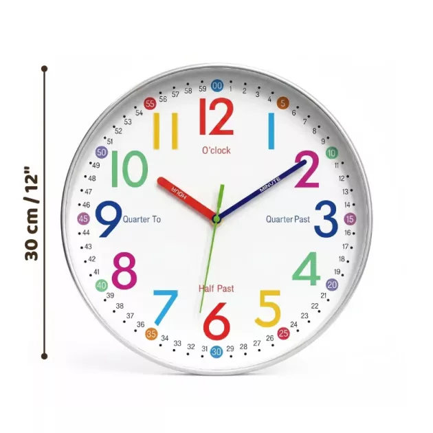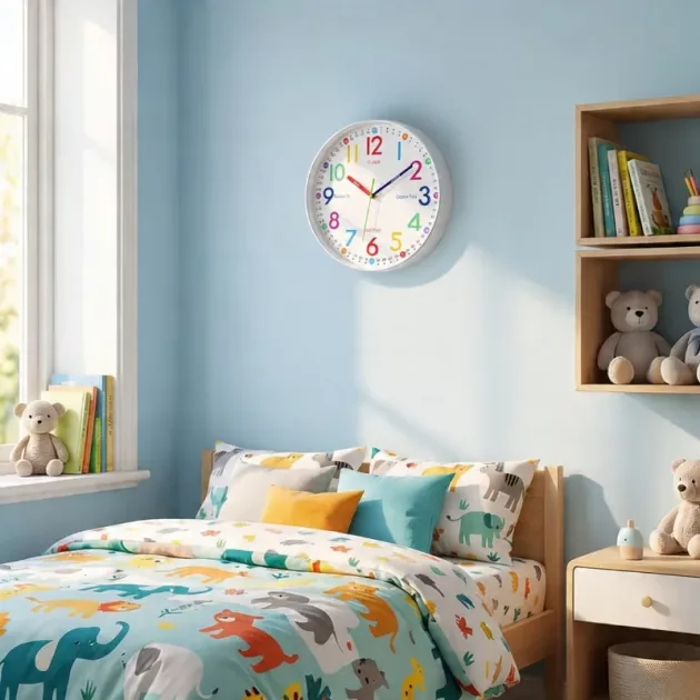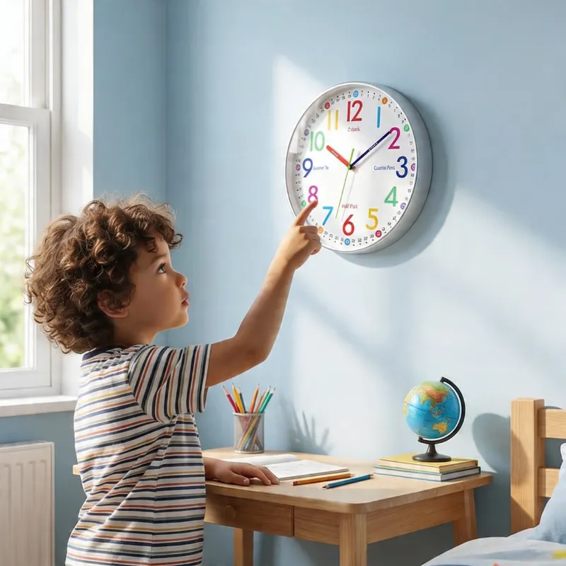 I hung this in the playroom and my twins started reading the time within a week. The soft ticking keeps the room peaceful after school.