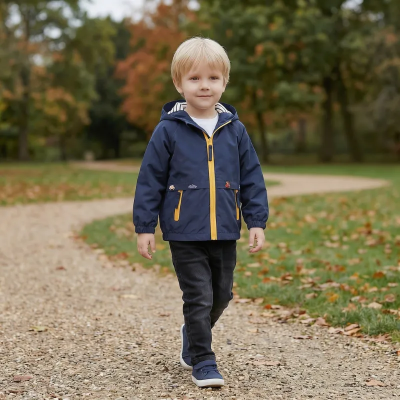 Rainy days or windy weather will not stop adventures. This jacket helps keep your little one dry while remaining lightweight and comfortable. Bright colours and cheerful designs make getting dressed easy and fun. Parents can relax knowing their child enjoys every outing comfortably.