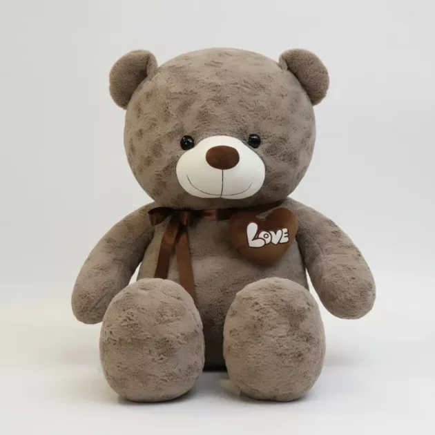 This big teddy makes sleep time cozy and safe. I pretend we’re on forest adventures together. Its fuzzy heart is really cute too.