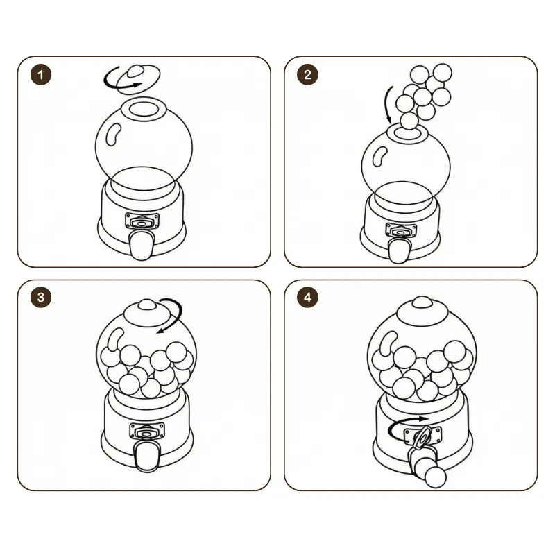 Turning the handle to get my favorite candy is the best part of my day. Even my parents join in sometimes!