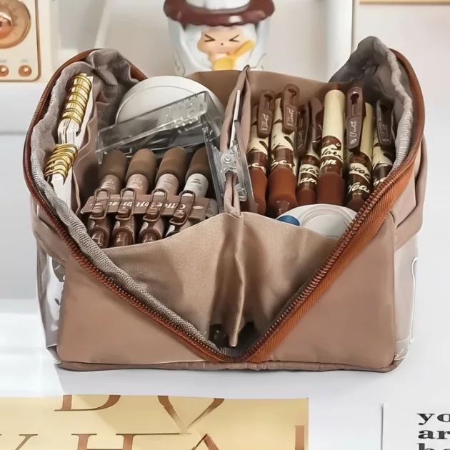 The pouch is easy to carry and fits perfectly into any bag. Sorting my colorful clip pens by sections is satisfying.