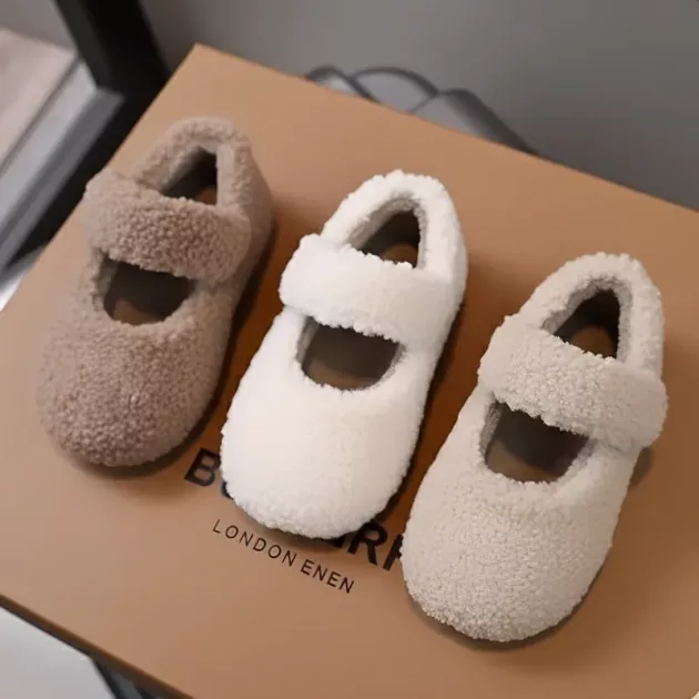 Cute Plush Baby First Walkers Non-Slip Warm Flat Shoes