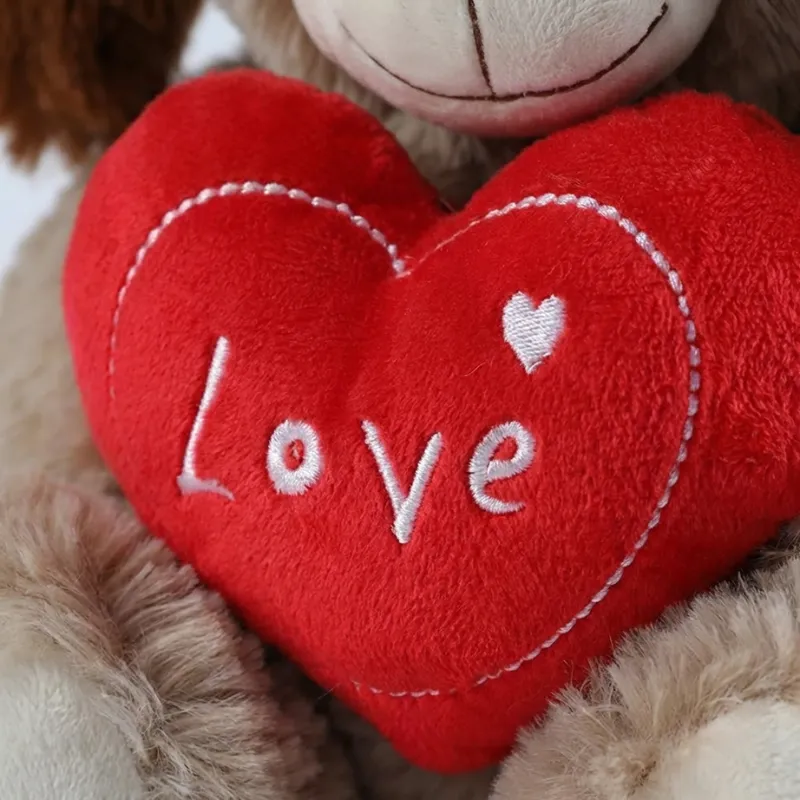 Snuggly friend with bright colors! My little sister carries it everywhere. It’s gentle and squishy, and she loves showing off the red heart.