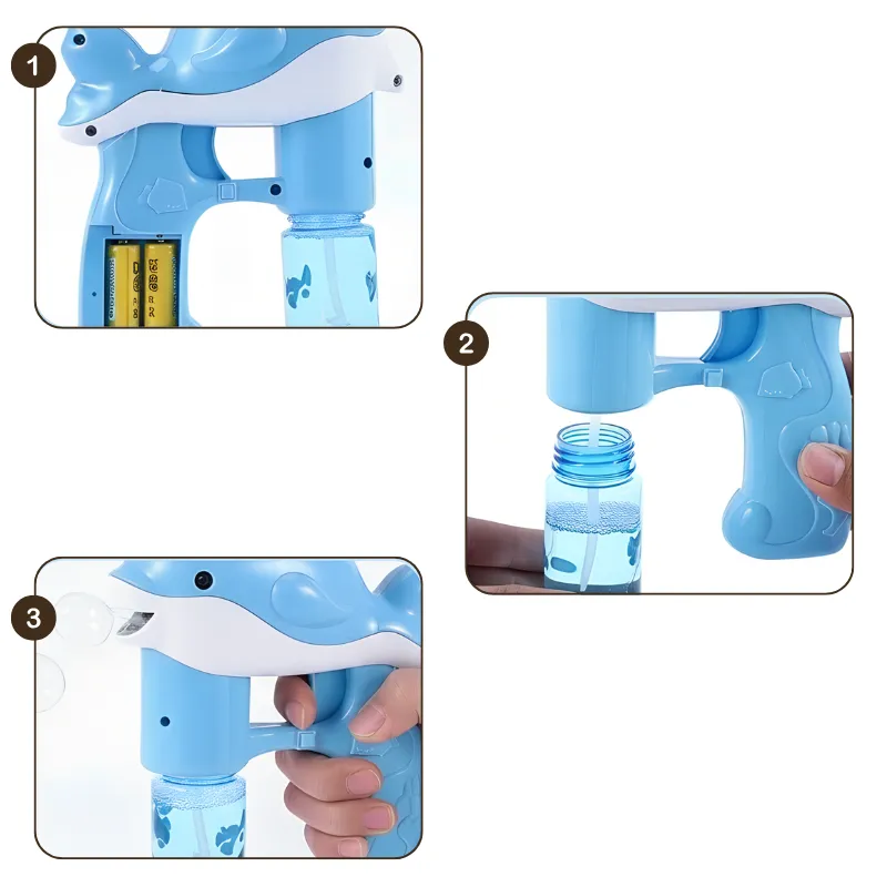I like how the whale gun lights up while playing. My brother likes chasing the bubbles all over the living room. Hours of giggles guaranteed!