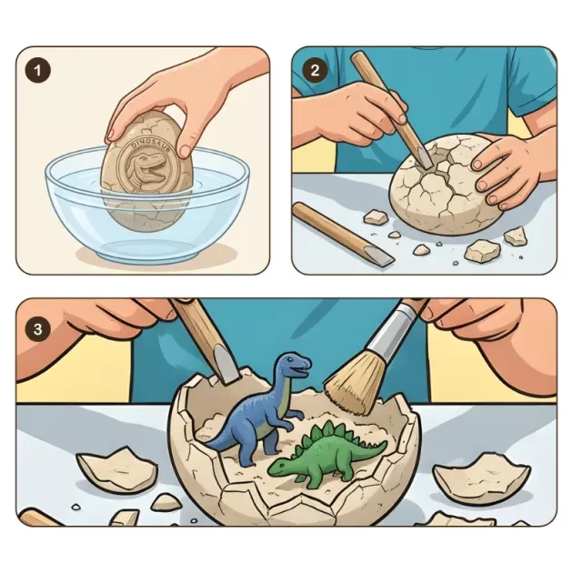 Breaking open the egg made me forget about video games for a while! I learned about dinosaurs and using tools was super fun too.