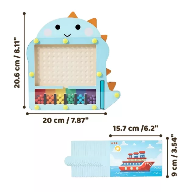 Watch your child light up as they explore vibrant dinosaur worlds. The clever design ensures every bead stays safely inside, removing mess for you. Picture cards offer endless ways to challenge, inspire and engage their growing mind. Let them create freely or follow patterns, building skills while having fun.