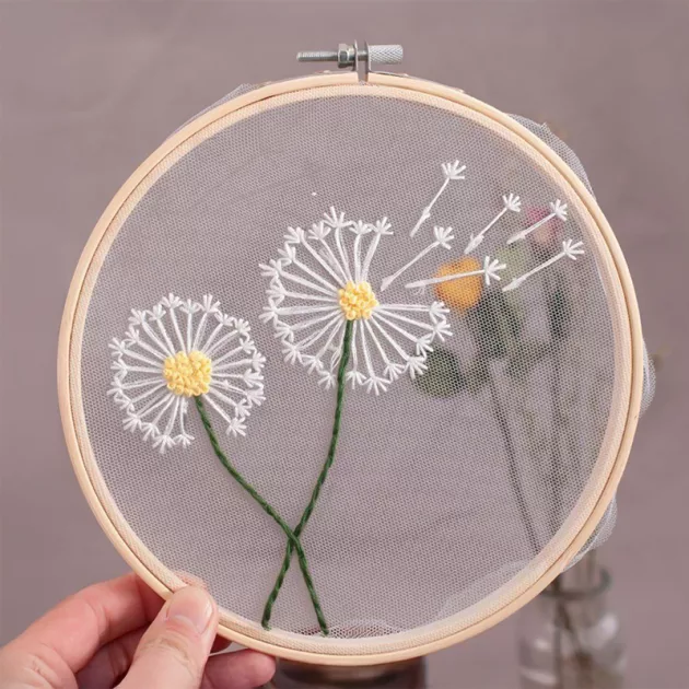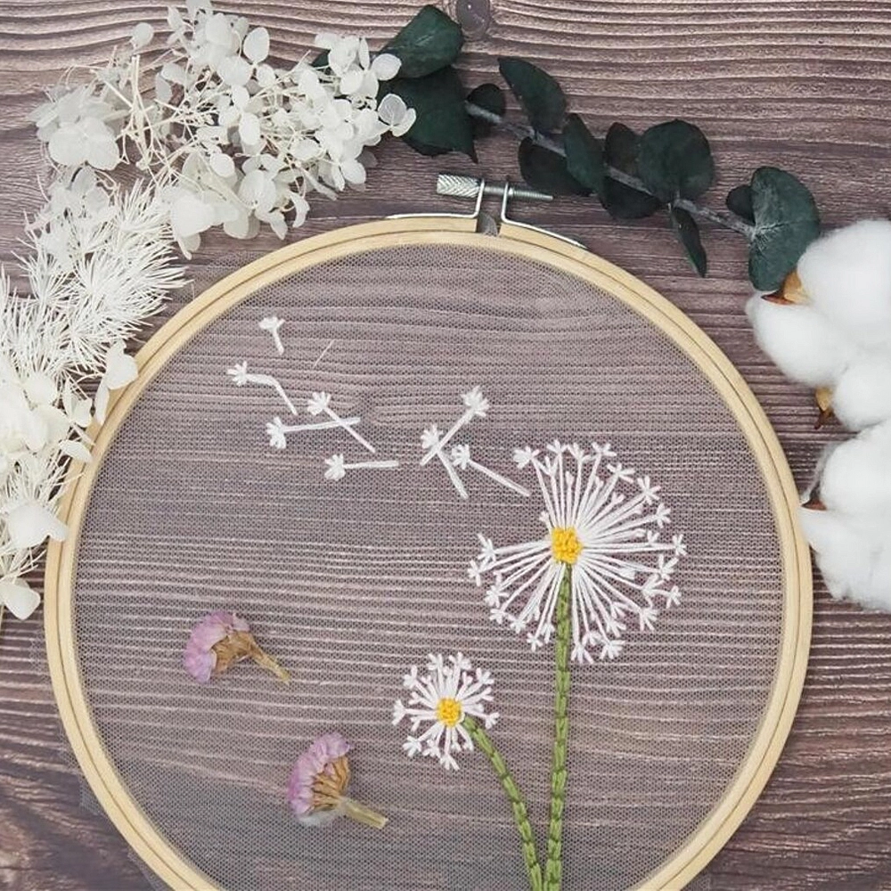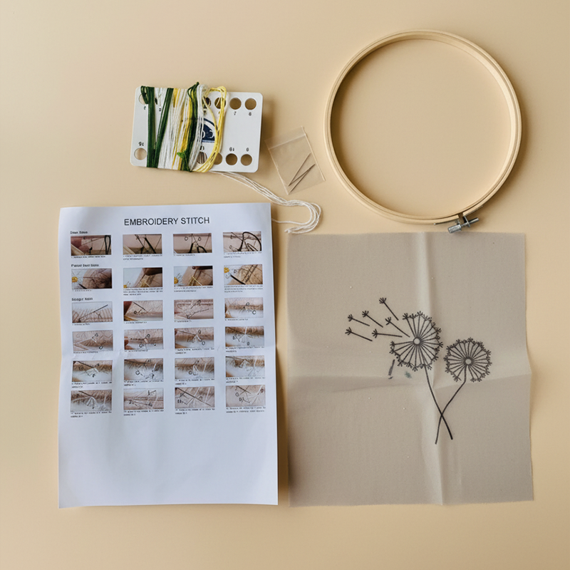 DIY Flower Embroidery Starter Kit with Wooden Frame