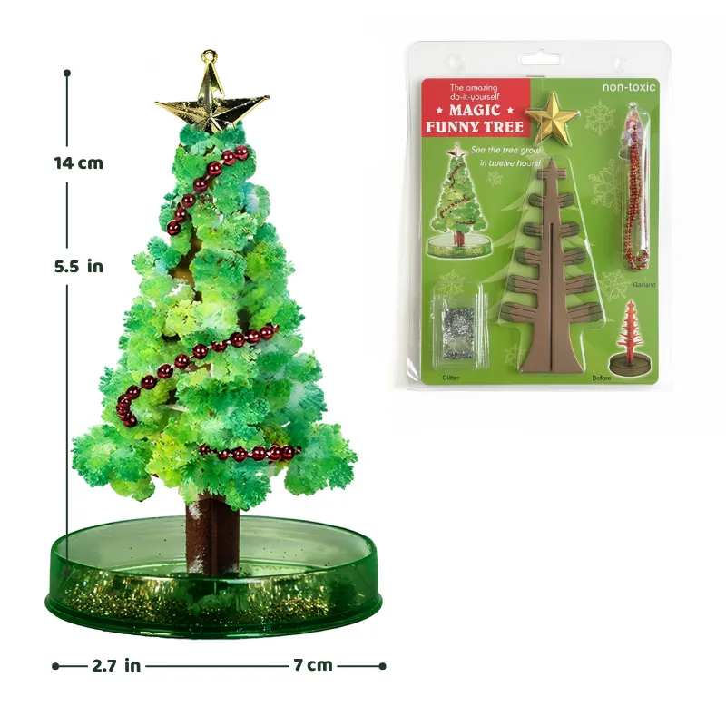We had this kit as our Christmas Eve activity. The tree grew overnight and looked amazing for Christmas morning. Very cool memory for us.
