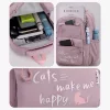 Mom said she’s happy because this bag is easy to wipe clean if I drop something on it. I like to use all the different pockets for my stuff.