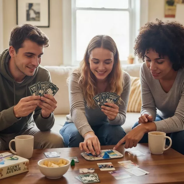 We bring Agent Avenue everywhere because it’s compact and durable. The bilingual cards mean everyone can play, even my grandparents.