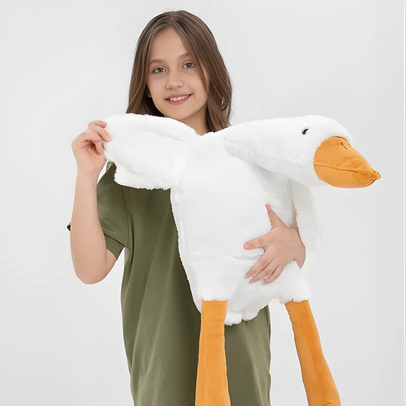 Love how soft and cuddly the goose is. It fits perfectly as a cute decoration on my daughter’s bed, and she squeezes it every morning for comfort.