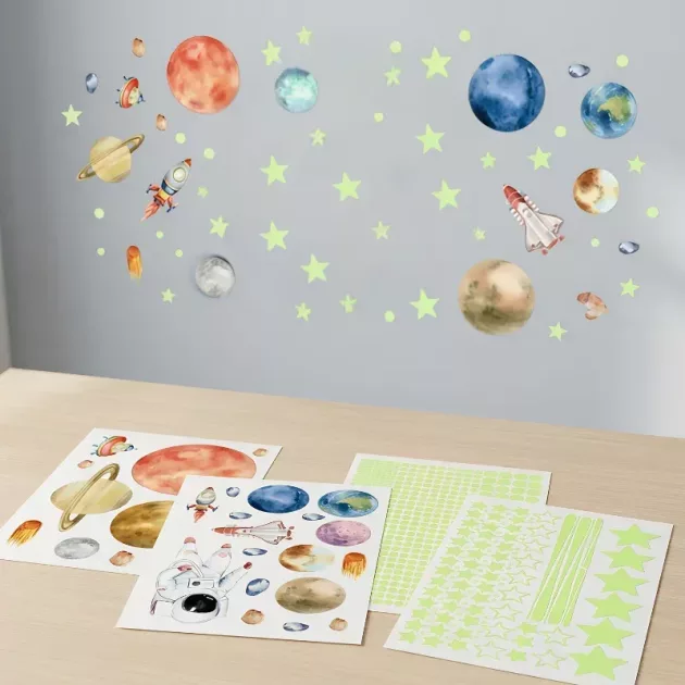 Children drift off peacefully, surrounded by glowing stars each night. Create a unique universe above their heads with shining planets and spaceships. Encourage dreams and nurture curiosity in a gentle and enchanting way.