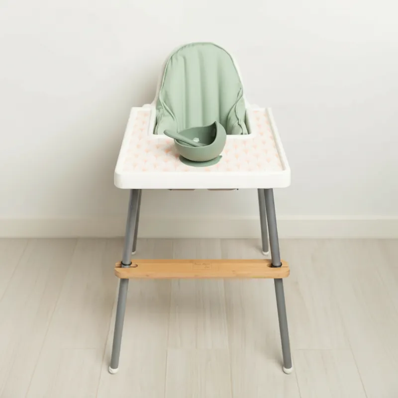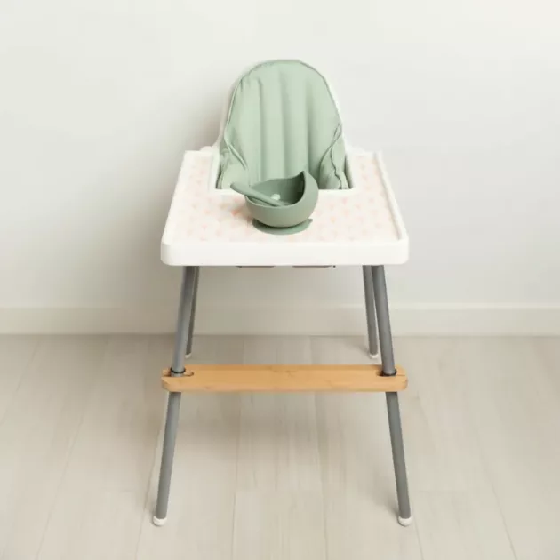 I’m impressed by how much steadier my grandson sits. He eats more and is less distracted with his feet on the wooden rest.