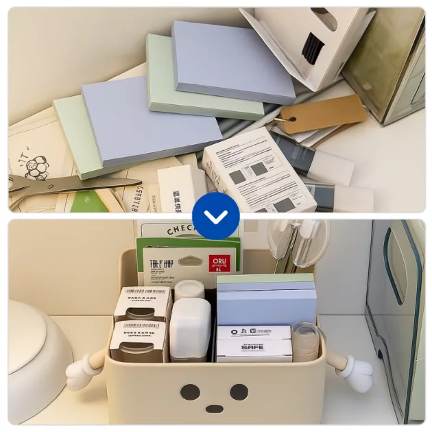 My desk used to always be messy! Now with the box, my scissors and glue have a special home. It feels good.
