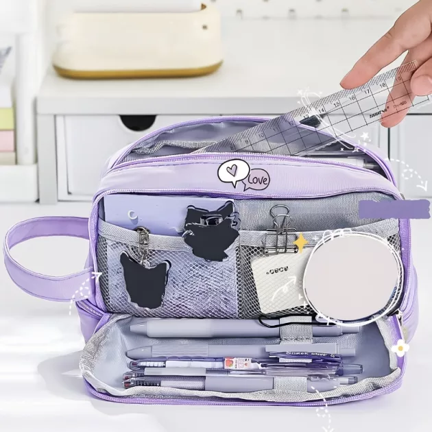Love how the pouch keeps my son’s crayons, markers, and erasers separated. The colorful style matches his backpack perfectly!