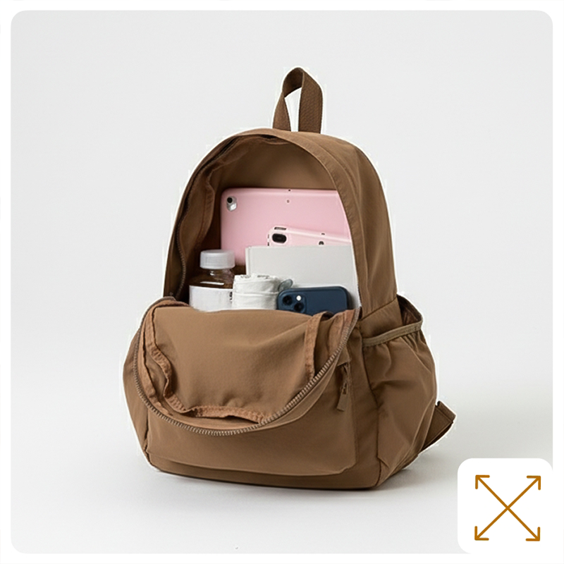 It’s got a spot for everything. I can find my pencil case fast, and the bag always feels super light.