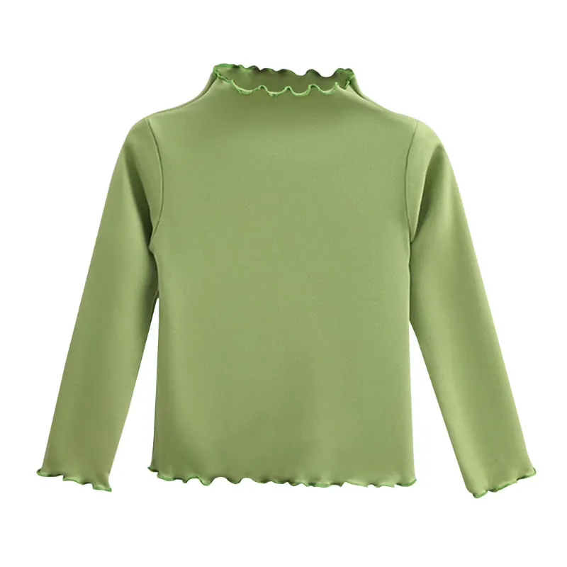 Lovely Warm Long Sleeve Shirt with Lettuce Edge for Kids