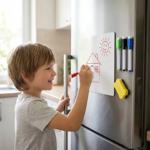 Our fridge board holds everything from dentist dates to weekend plans. The kids add jokes with the markers, and we all check it before leaving the house each morning.