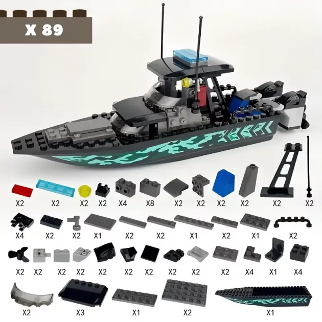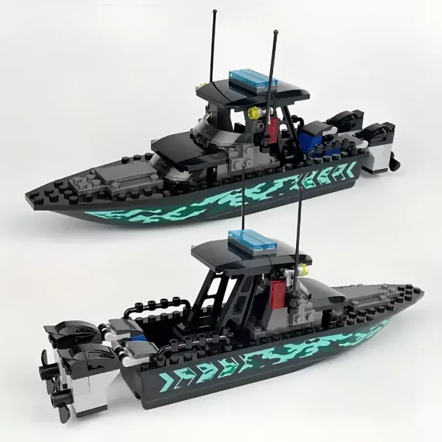 Police Patrol Boat Building Blocks Ship Assembly Toy for Kids