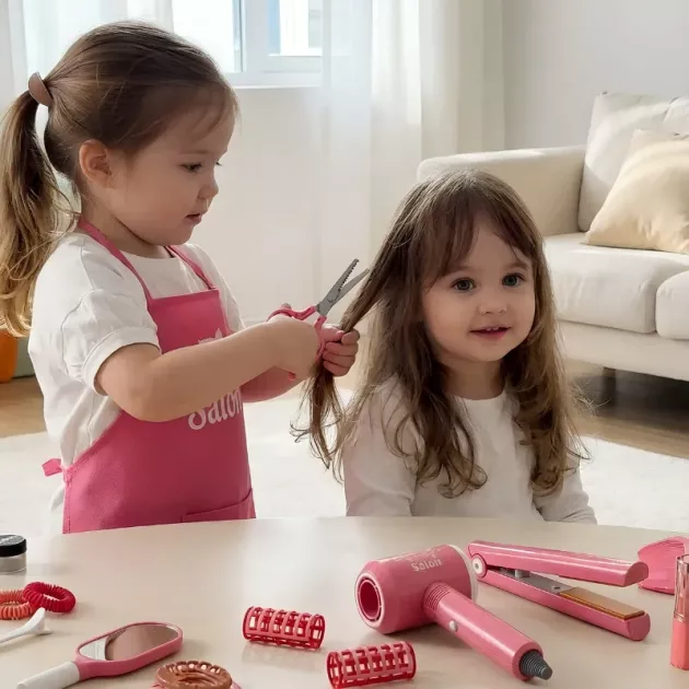 Set comes with lots of stuff to share. Playing pretend hairdresser has helped my kid talk more and feel confident.