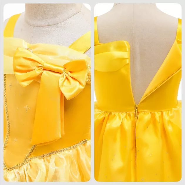 The dress survived multiple parties and still looks pretty! My niece adores feeling like Belle and takes it everywhere. Very impressive durability.