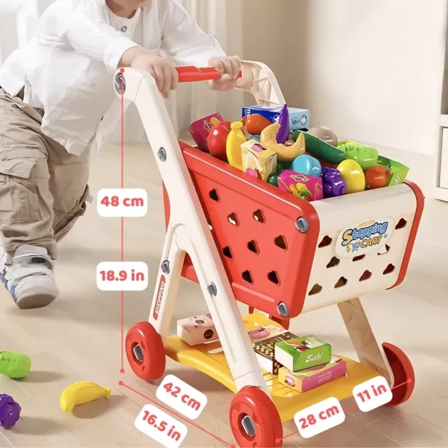 Social interaction - This grocery cart toy is perfect for pretend role-play with friends or family. Children can act as both shoppers and shopkeepers, enhancing their communication skills.