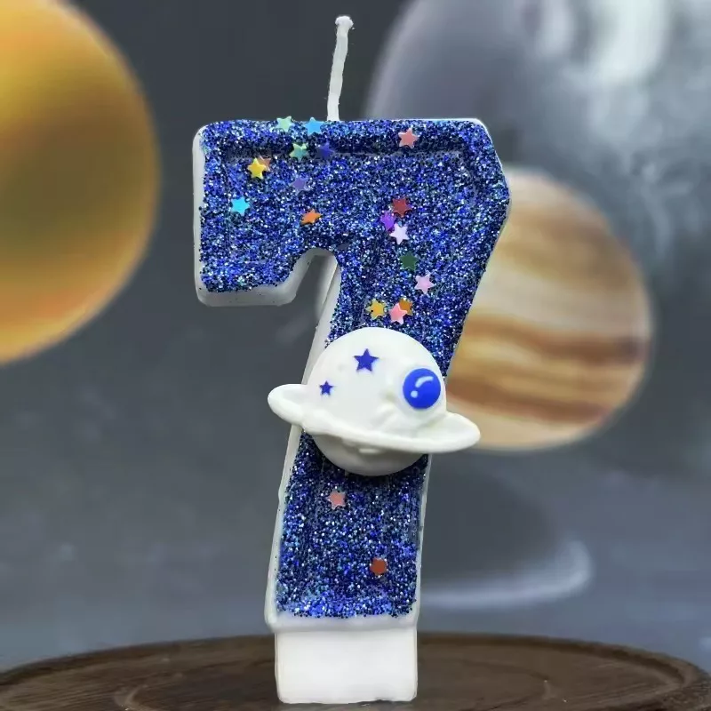 birthday cake candle, space theme cake candle, birthday number candle