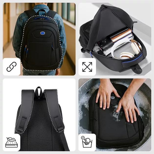 Super easy to keep clean after muddy days. The material feels strong and my backpack holds up all school year.