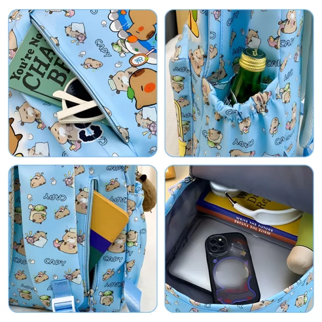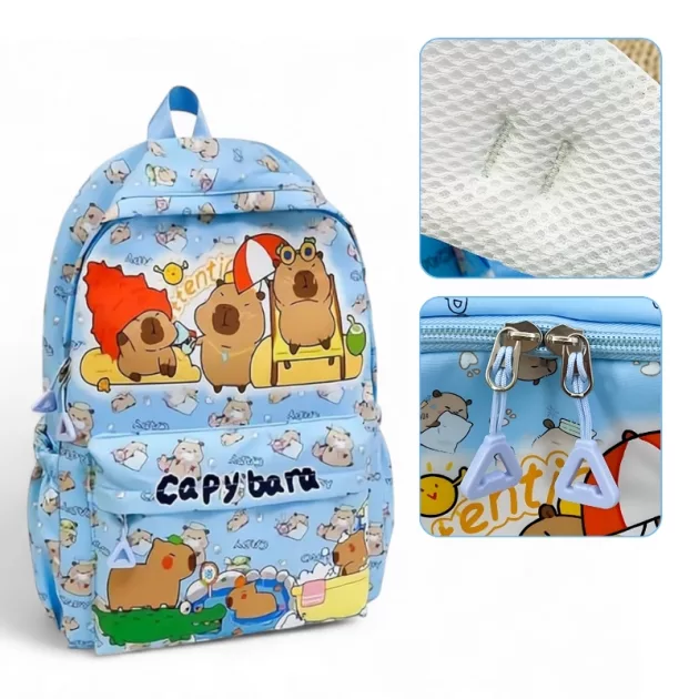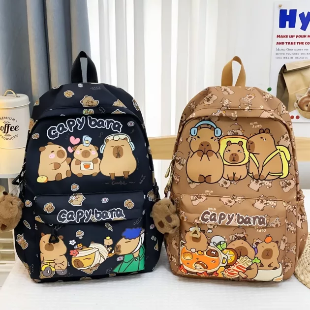 I love my new backpack! The capybara print makes school mornings more fun, and I can fit all my notebooks inside with room to spare.