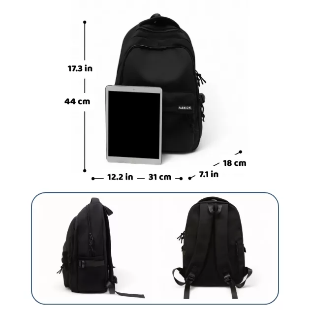 My books and lunchbox fit with extra space to spare. The straps are soft on my shoulders and the zippers are easy to open.