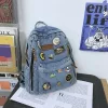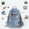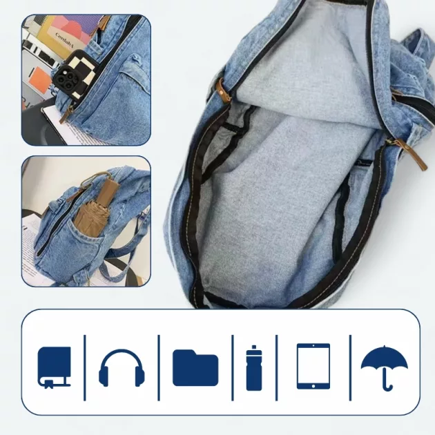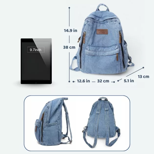 I bring my denim backpack everywhere now! It survived rain, lunch spills, and running in the playground. Still looks almost new and the color is cool.